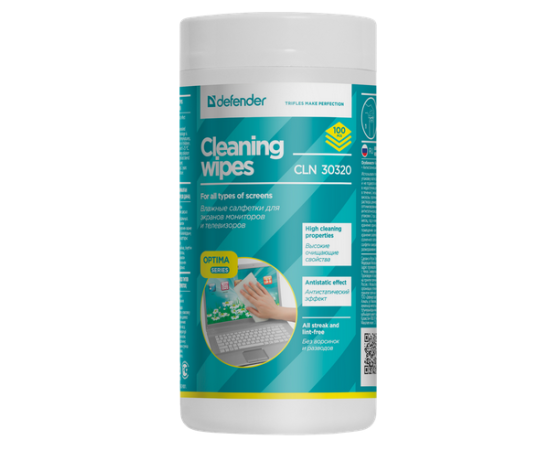 Чистящие салфетки Defender ECO для экранов всех видов: ЭЛТ, ЖК, плазменными панелями / туба / 100 шт