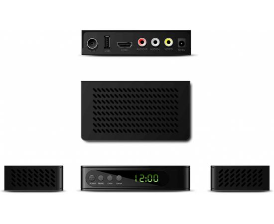 кнопки управления на корпусе, дисплей (каналы или часы). При подключении к интернету (USB WiFi адаптер на чипсете MTK MT7601 приобретается отдельно) доступны YouTube, Погода, RSS новости, IPTV, MEGOGO. В комплекте: ТВ-ресивер, пульт ДУ и батарейки к нему, видеокабель RCA, блок питания, инструкция
