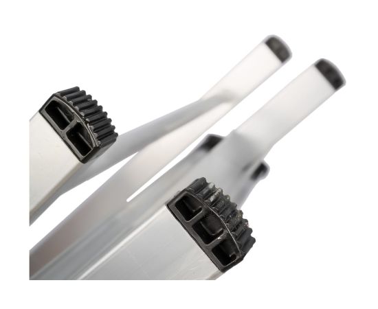 Алюминиевая конструкция делает стремянку легкой и прочной, ее можно эксплуатировать внутри помещений и на улице, так как она не подвержена коррозии.