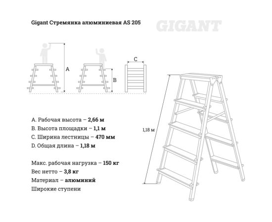 Cтремянка Gigant AS.205 алюминиевая