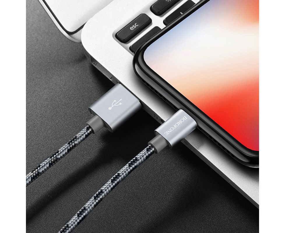 Дата-кабель BOROFONE BX24 Ringl lightning 1м (серый)