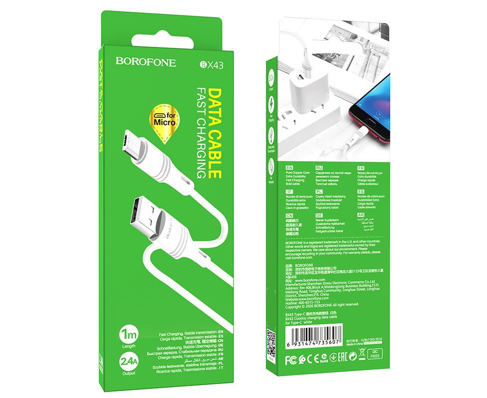 Дата-кабель BOROFONE BX43 CoolJoy micro 1м (белый)