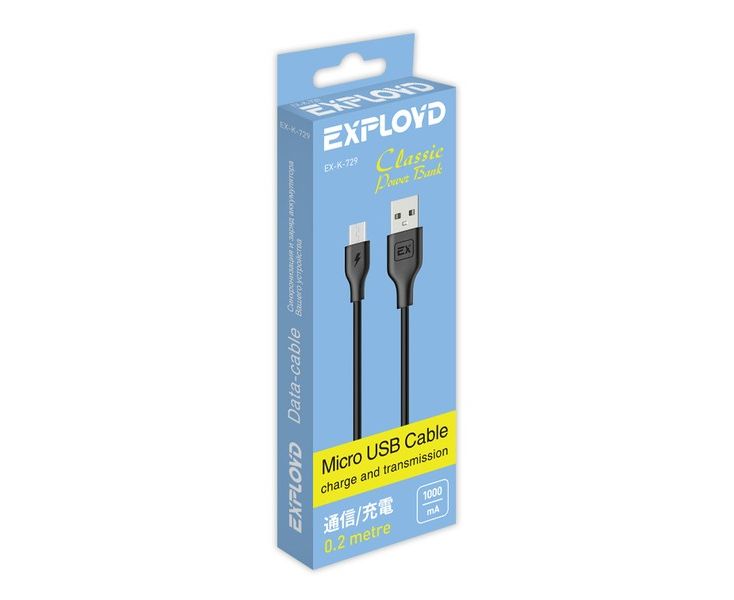 Дата-кабель Exployd EX-K-729 USB microUSB 0.2М Power Bank Classic круглый чёрный