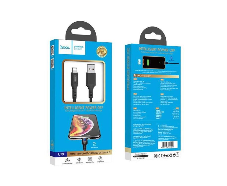 Дата-кабель HOCO U79 Admirable smart power lightning 1м (чёрный)