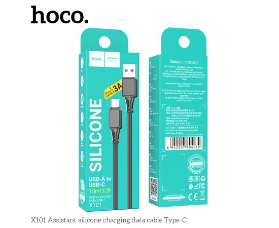 Дата-кабель HOCO X101 Assistant 60W silicone charging data cable Type-C + Type-C (черный)