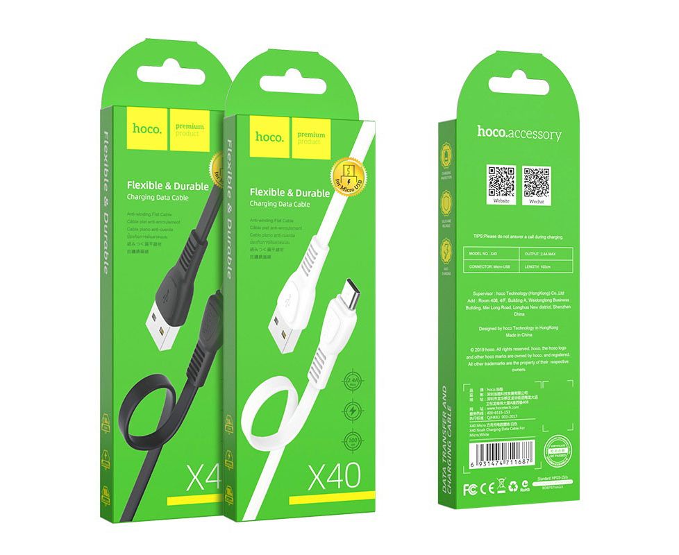 Дата-кабель HOCO X40 Noah micro 1м (белый)