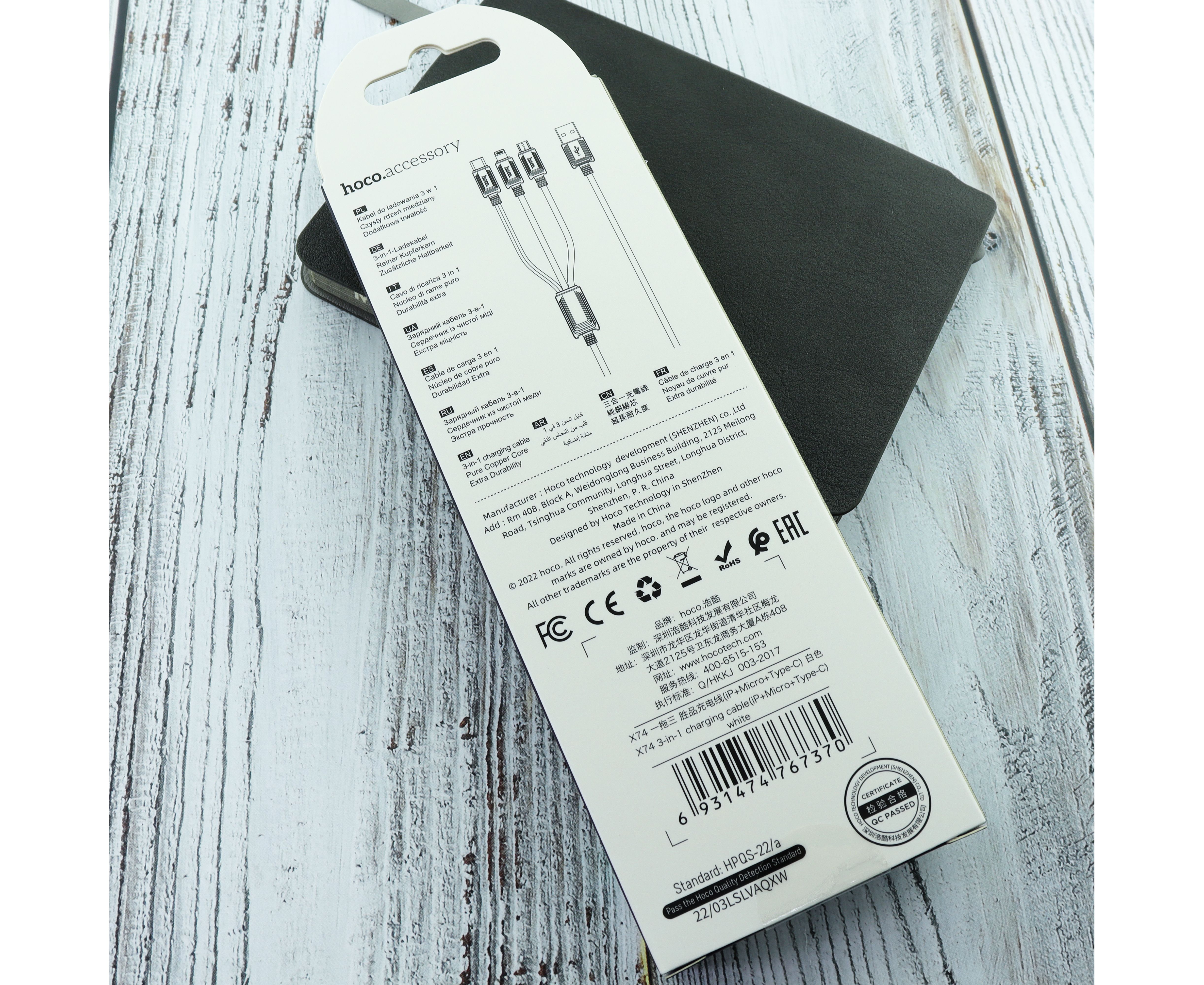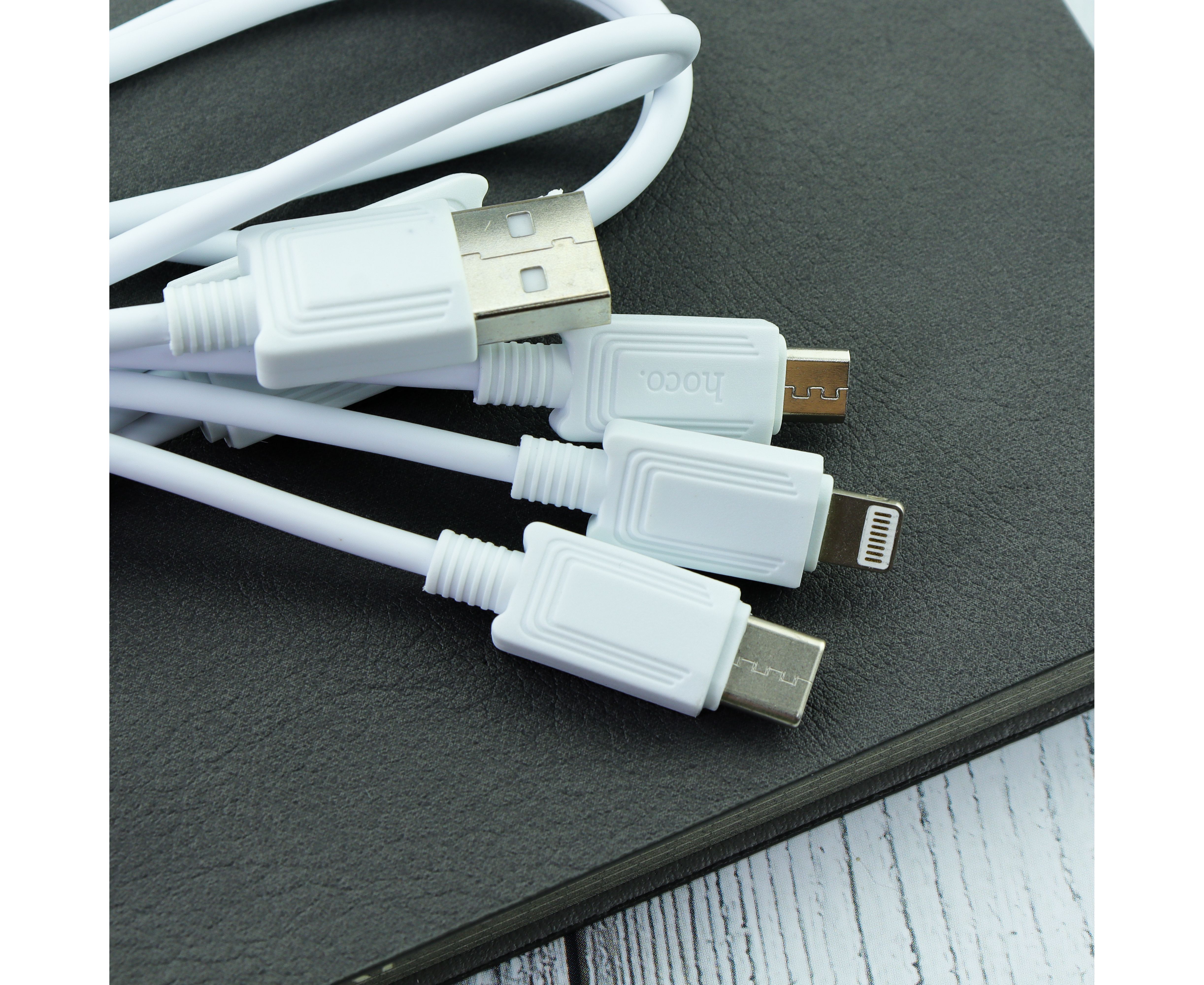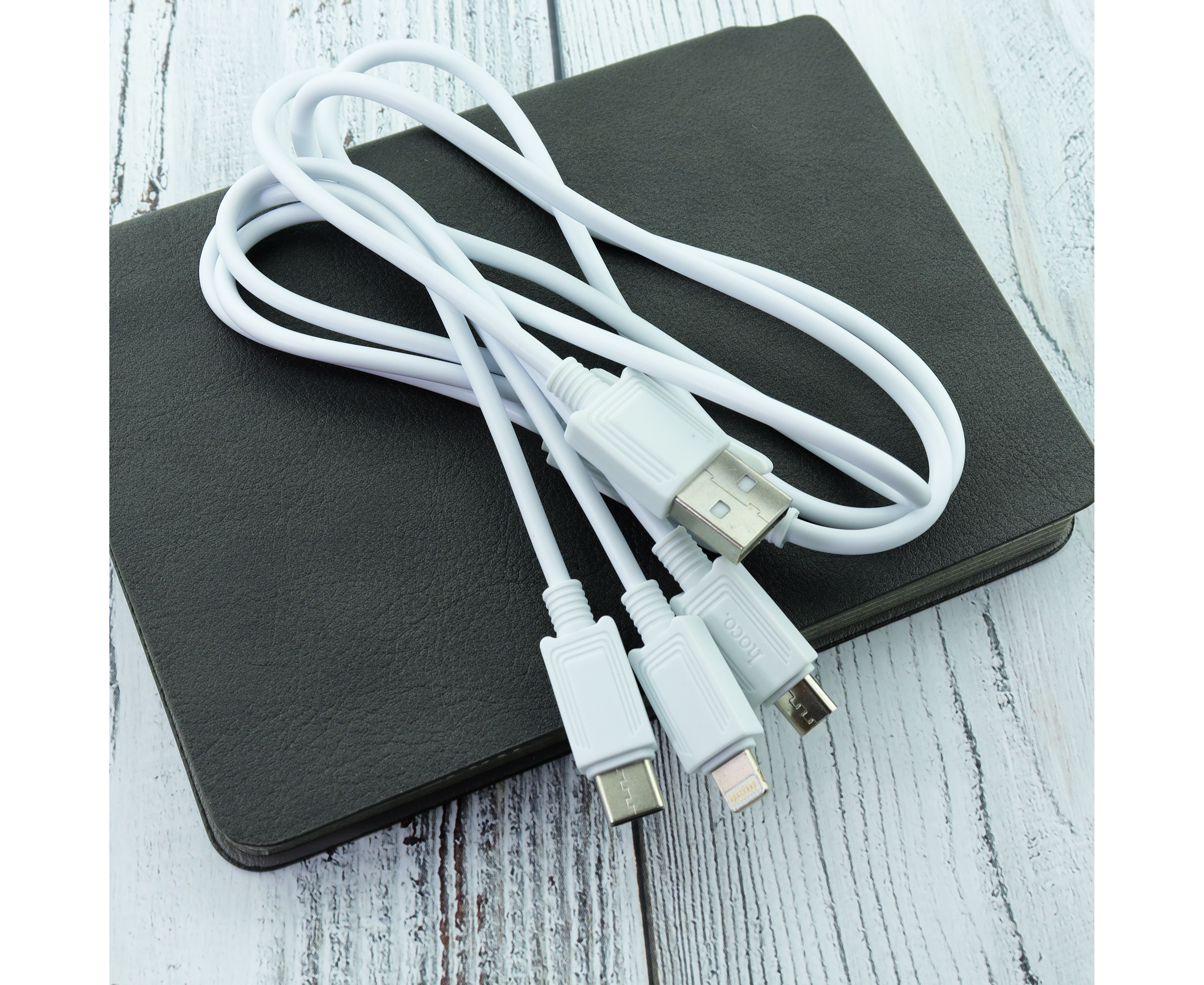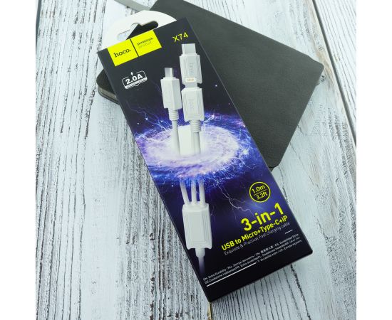 Дата-кабель HOCO X74 3-in-1 charging cable, iP, Micro, Type-C (белый)
