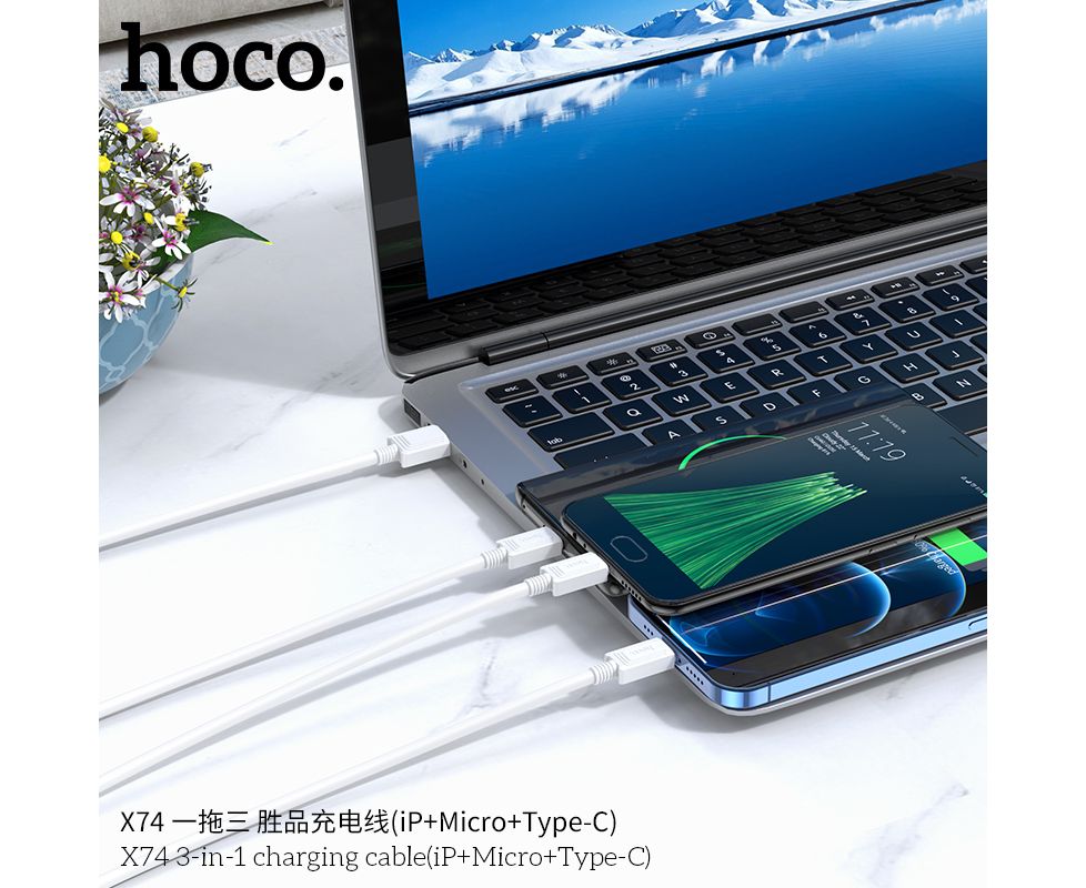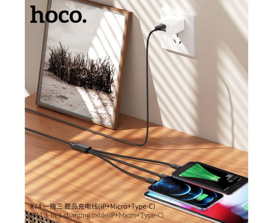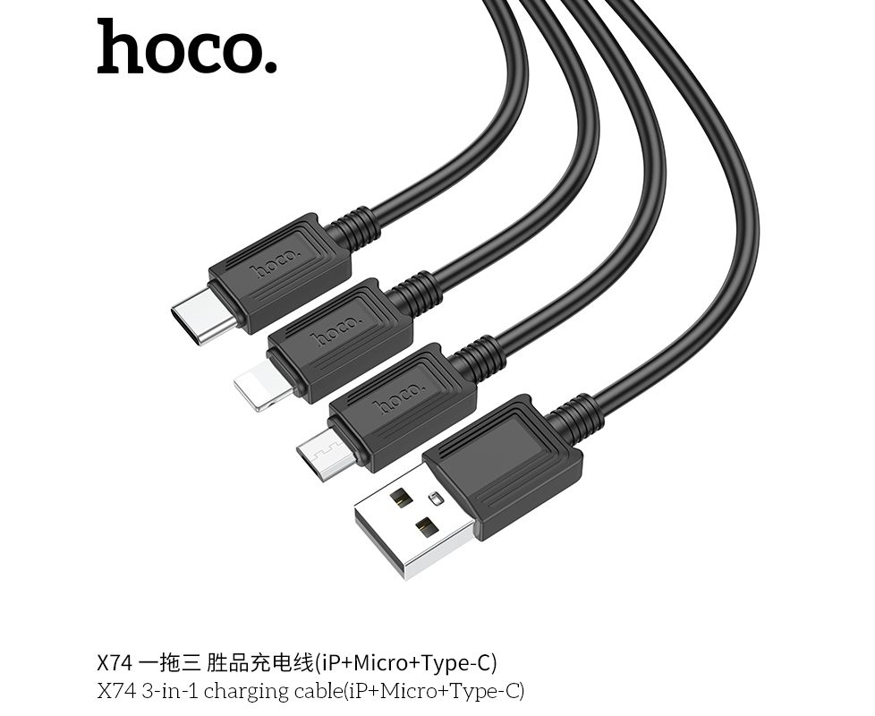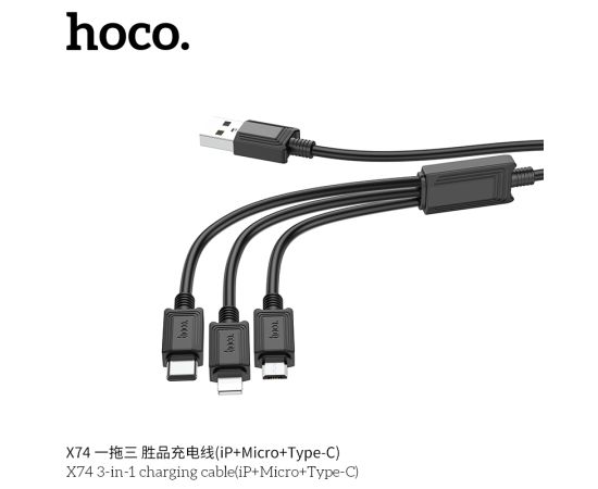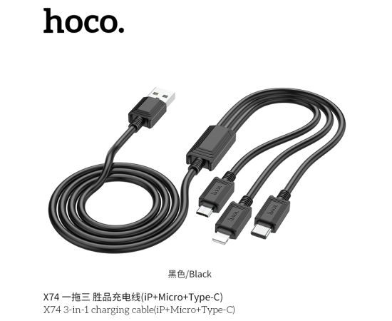 Дата-кабель HOCO X74 3-in-1 charging cable, iP, Micro, Type-C (чёрный)