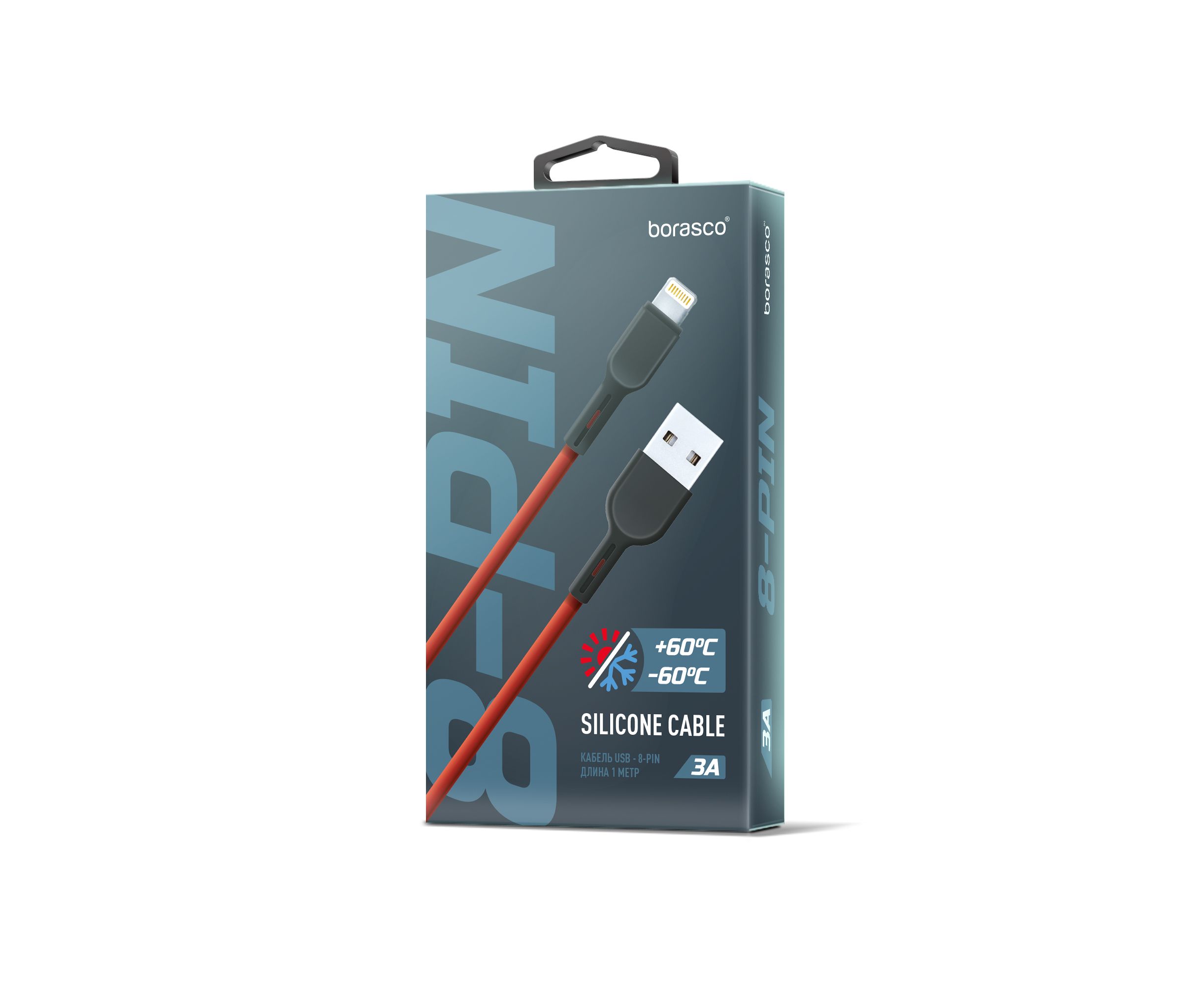 Дата-кабель Silicone Soft Touch USB - 8 pin, 3А, 1м, красный