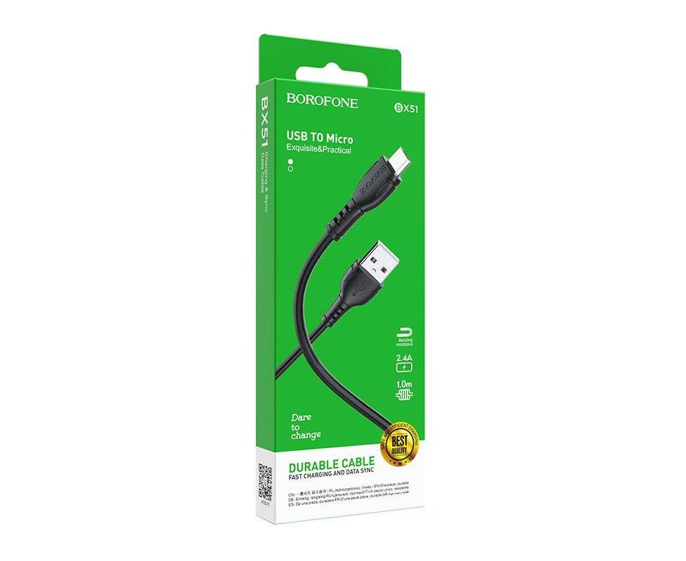 Дата-кабель USB 2.4A для micro USB Borofone BX51 ПВХ 1м (Black)