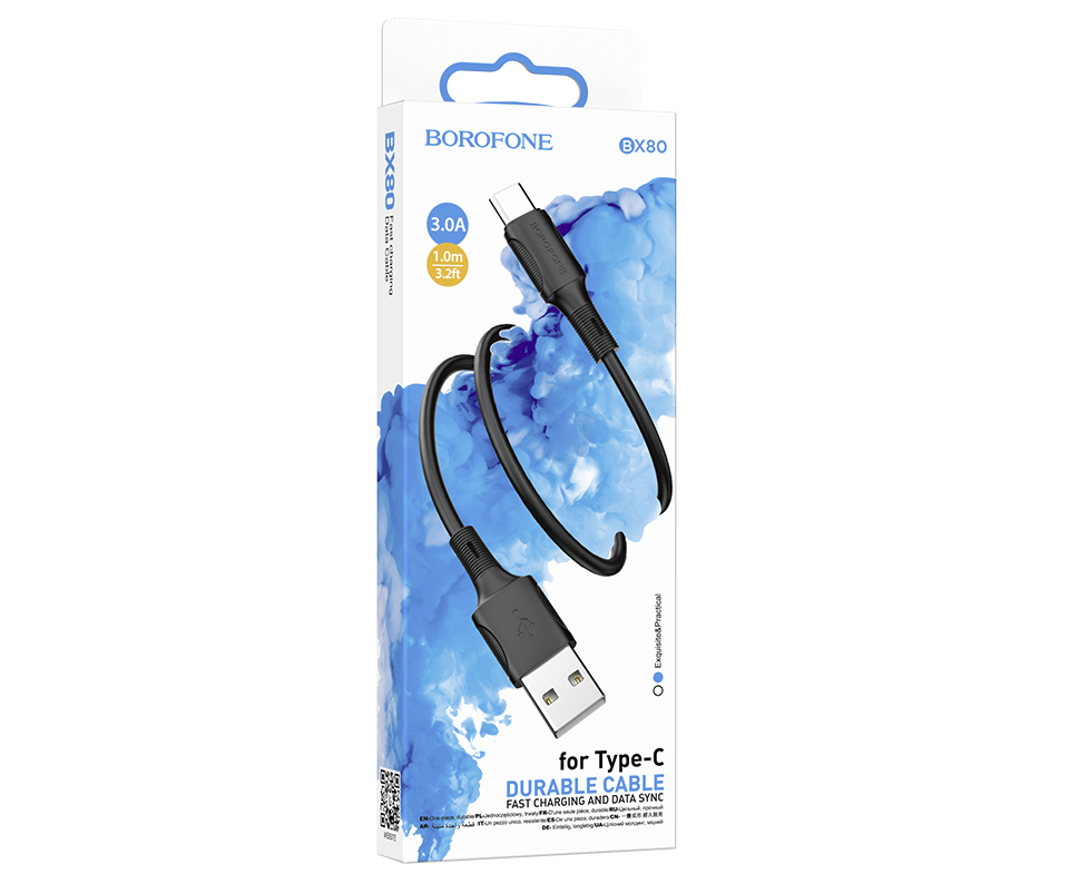Дата-кабель USB 2.4A для Type-C Borofone BX80 ПВХ 1м (Black)