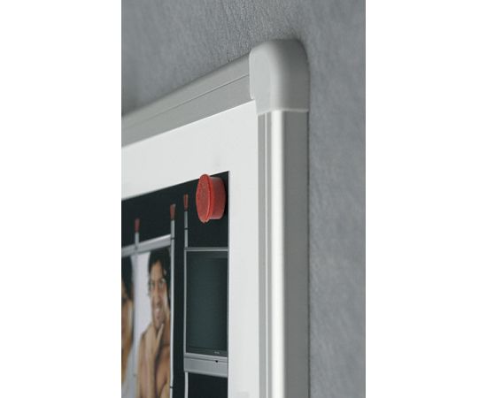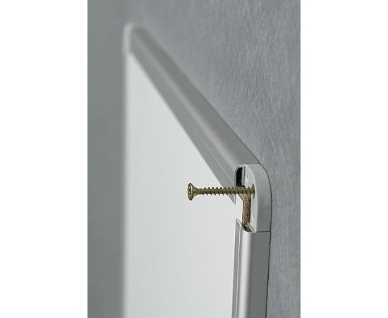 Описание: Лакированная для письма сухостираемыми маркерами и прикрепления информации магнитами. Рамка из анодированного алюминия с пластмассовыми уголками. Скрытое крепление к стене в четырех углах.