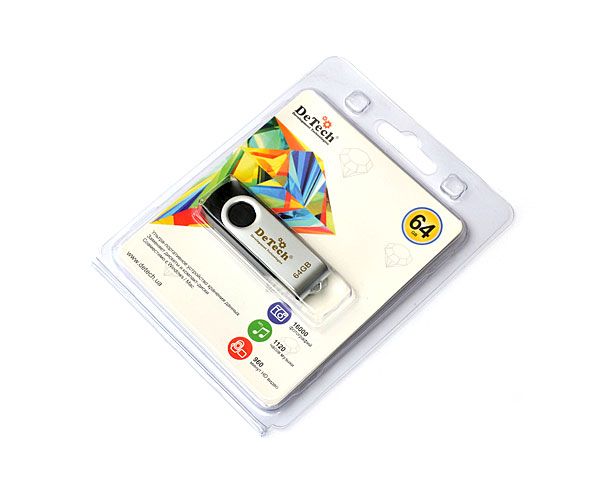 Корпус DeTech изготовлен из прочного пластика. Благодаря богатой цветовой гамме каждая модель приобретает индивидуальный характер. Дополнительным преимуществом является поворотная металлическая скоба, которая также защищает устройство памяти USB и придает ему неповторимый вид. Поворотная система замыкания USB и отсутствие колпачка удовлетворит потребности даже самых рассеянных пользователей.