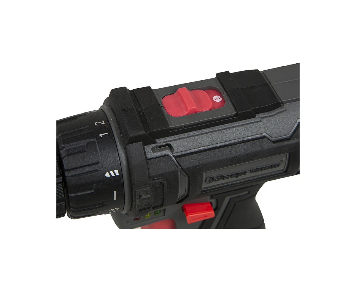 - Переключаемый двухскоростной редуктор выдает оптимальный крутящий момент для закручивания или высокую скорость сверления.