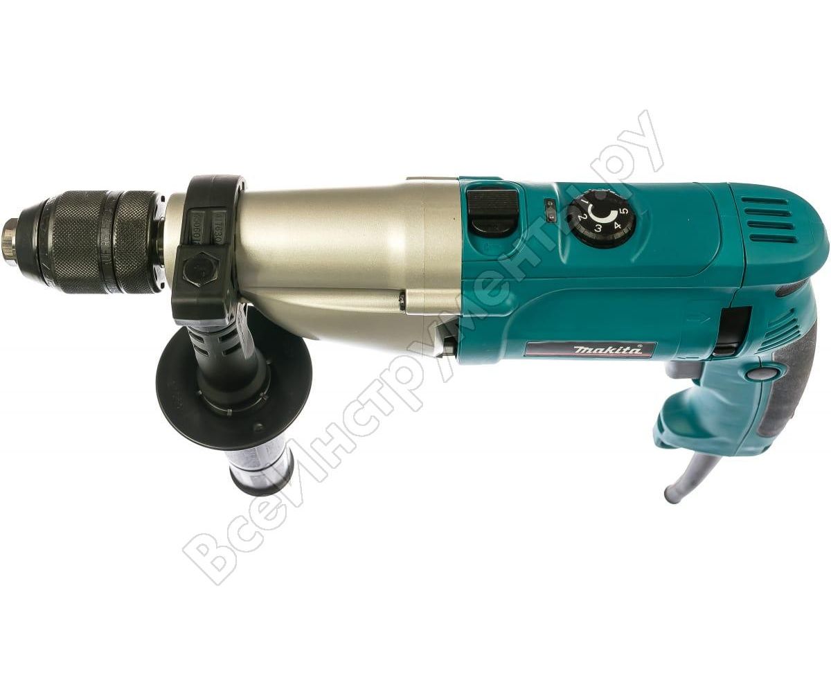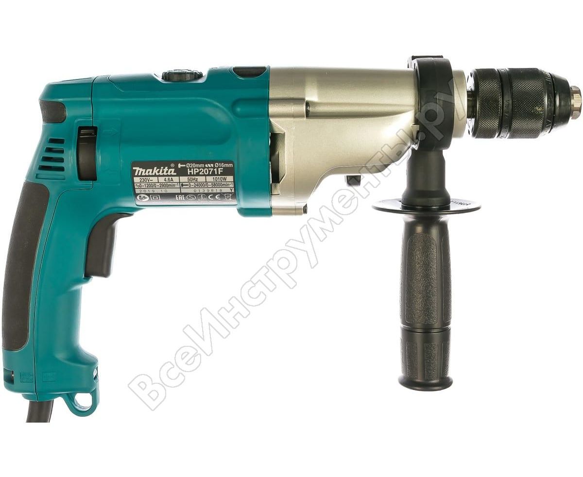 Двухскоростная ударная дрель Makita HP 2071 F имеет два режима работы: сверление и сверление с ударом.