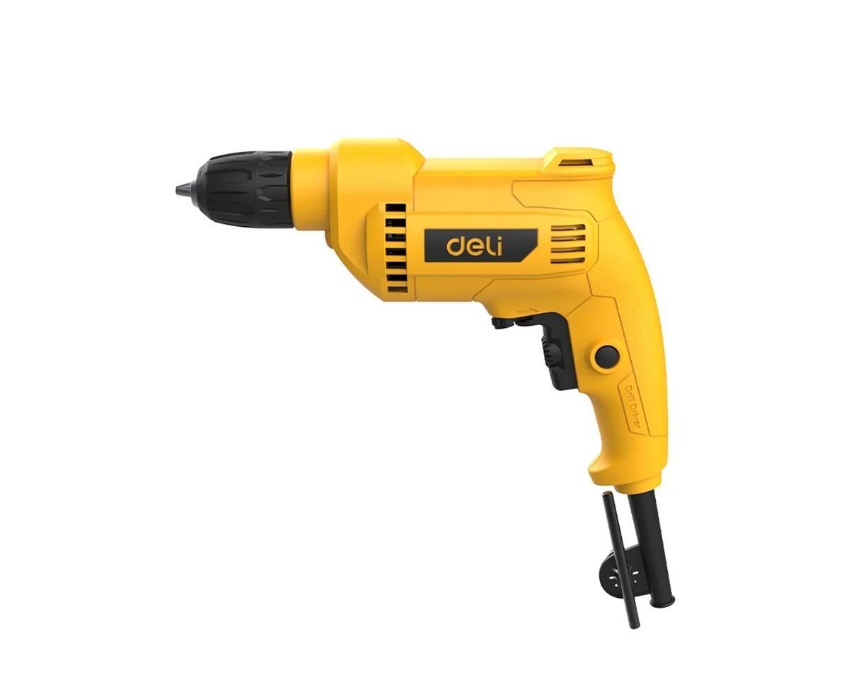 Deli DL-DZ10-E2 — мощная и удобная сетевая дрель для любых задач!Двигатель 500 Вт и скорость до 3300 об/мин позволяют легко сверлить дерево, металл и пластик, а продуманная конструкция делает работу комфортной даже при интенсивном использовании.