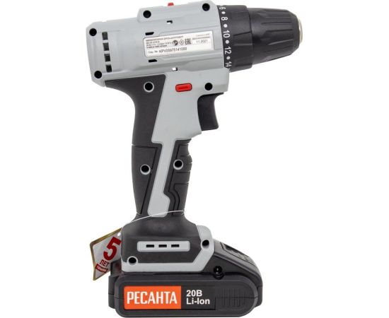 Дрель-шуруповерт аккумуляторная Ресанта ДА-20-2ЛК-Б (2,0 А/ч) 75/14/10