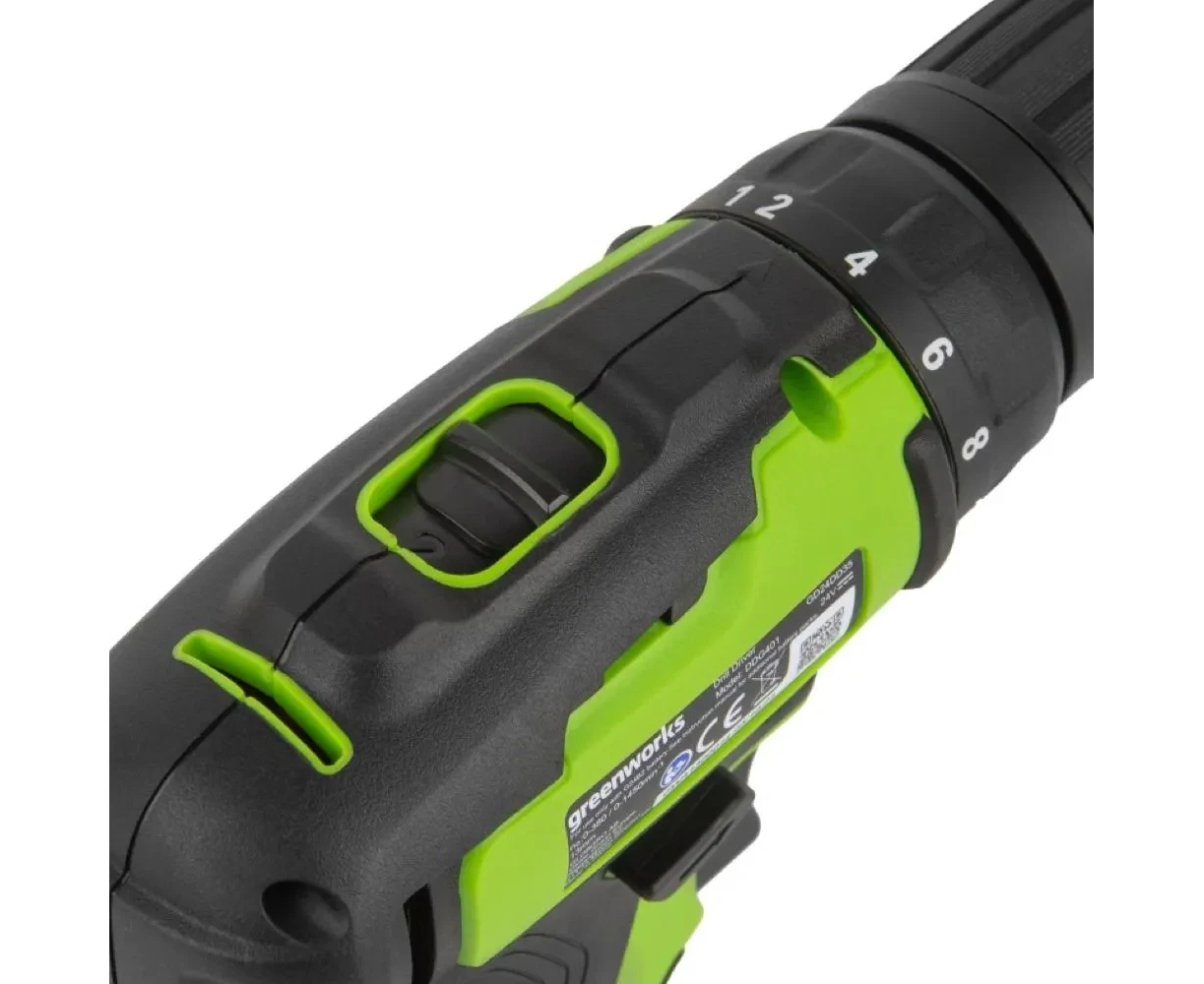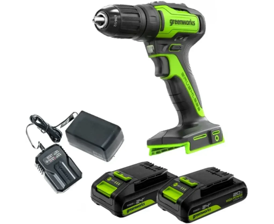 Дрель-шуруповерт Greenworks GD24DD35 (3704007CUC) аккумуляторная, 24V, б/щет, 29/35Нм, 2х2Ач, ЗУ, кор