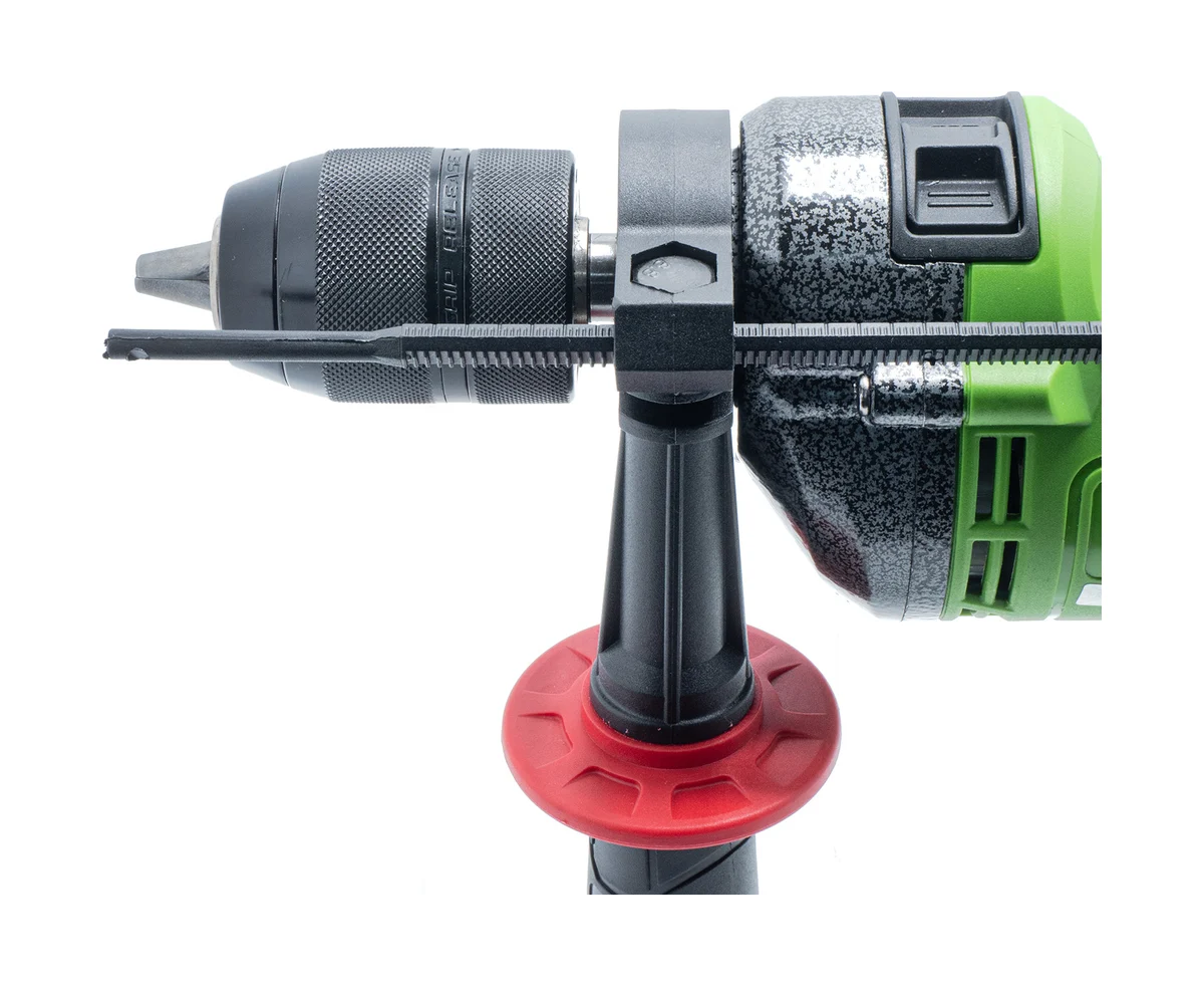 Рабочий орган надежно зажимает трехкулачковый патрон, при предельном диаметре хвостовика до 13 мм. Глубину выполняемого отверстия можно контролировать глубиномером.