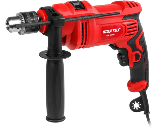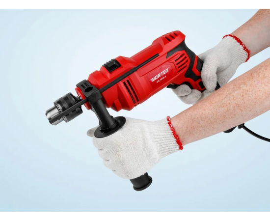 Дрель ударная WORTEX имеет медную обмотку двигателя и металлический сверлильный патрон. Дополнительная рукоятка обеспечивает надежный захват, имеется регулировка скорости, ограничитель глубины, реверс и блокировка кнопки включения.