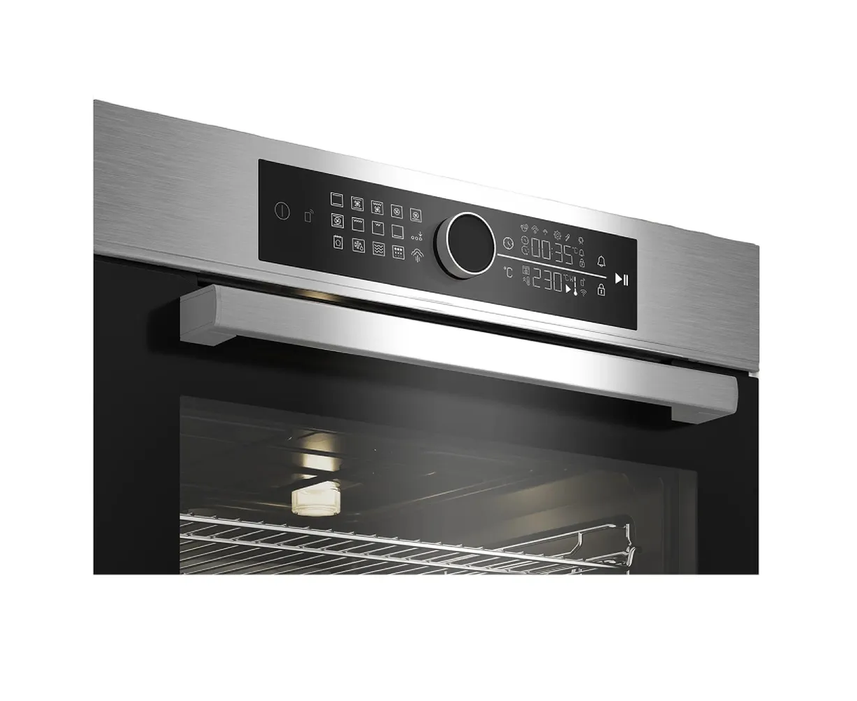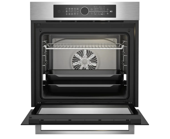 Особенности духовки, плиты: Быстрый нагрев, Вентилятор охлаждения, Встроенные часы, Двухуровневое приготовление, Дисплей, Доводчик дверцы духовки, Полностью стеклянная внутренняя дверца, Хромированные направляющие