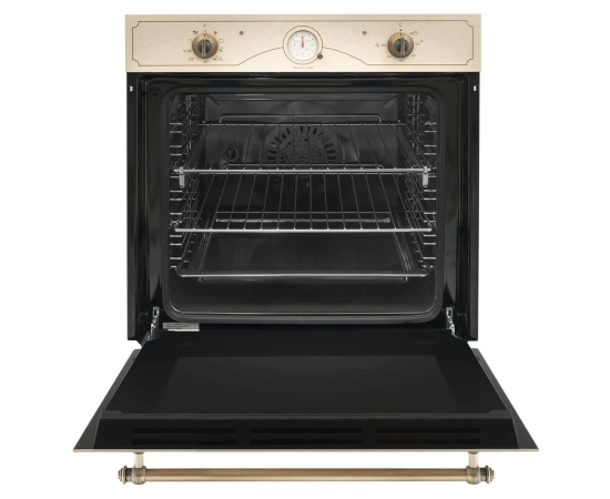 Особенности духовки, плиты: Быстрый нагрев, Вентилятор охлаждения, Встроенные часы, Дизайн Ретро, Электромеханический вертел, Хромированные направляющие, Защитное покрытие от отпечатков пальцев