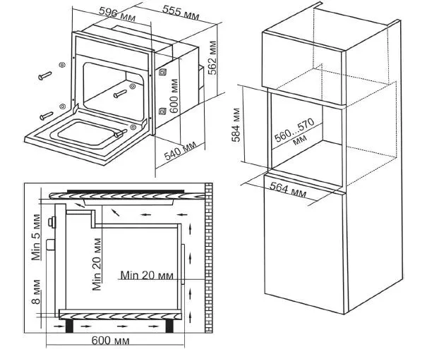 Ширина духовки 59.6