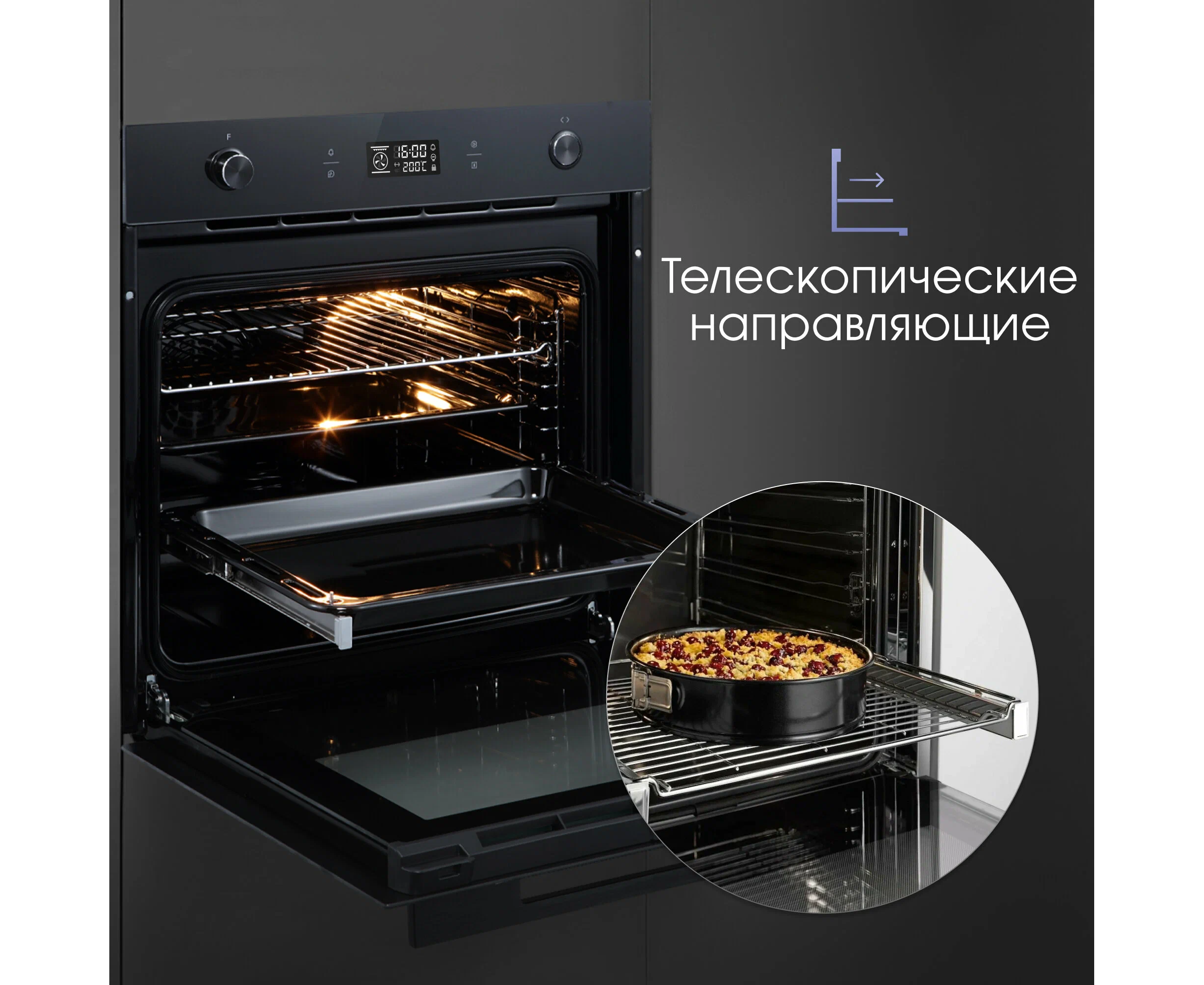 дисплей, подсветка камеры, тангенциальное охлаждение, телескопические направляющие, часы, эмаль легкой чистки