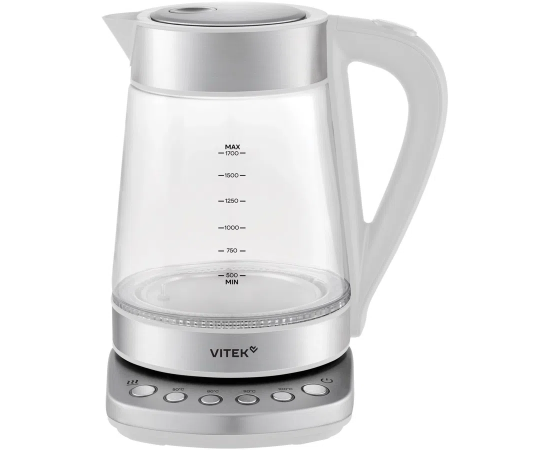 Электрочайник Vitek VT-WK1031 1.7л 2200Вт белый/серебристый корпус стекло/металл/пластик