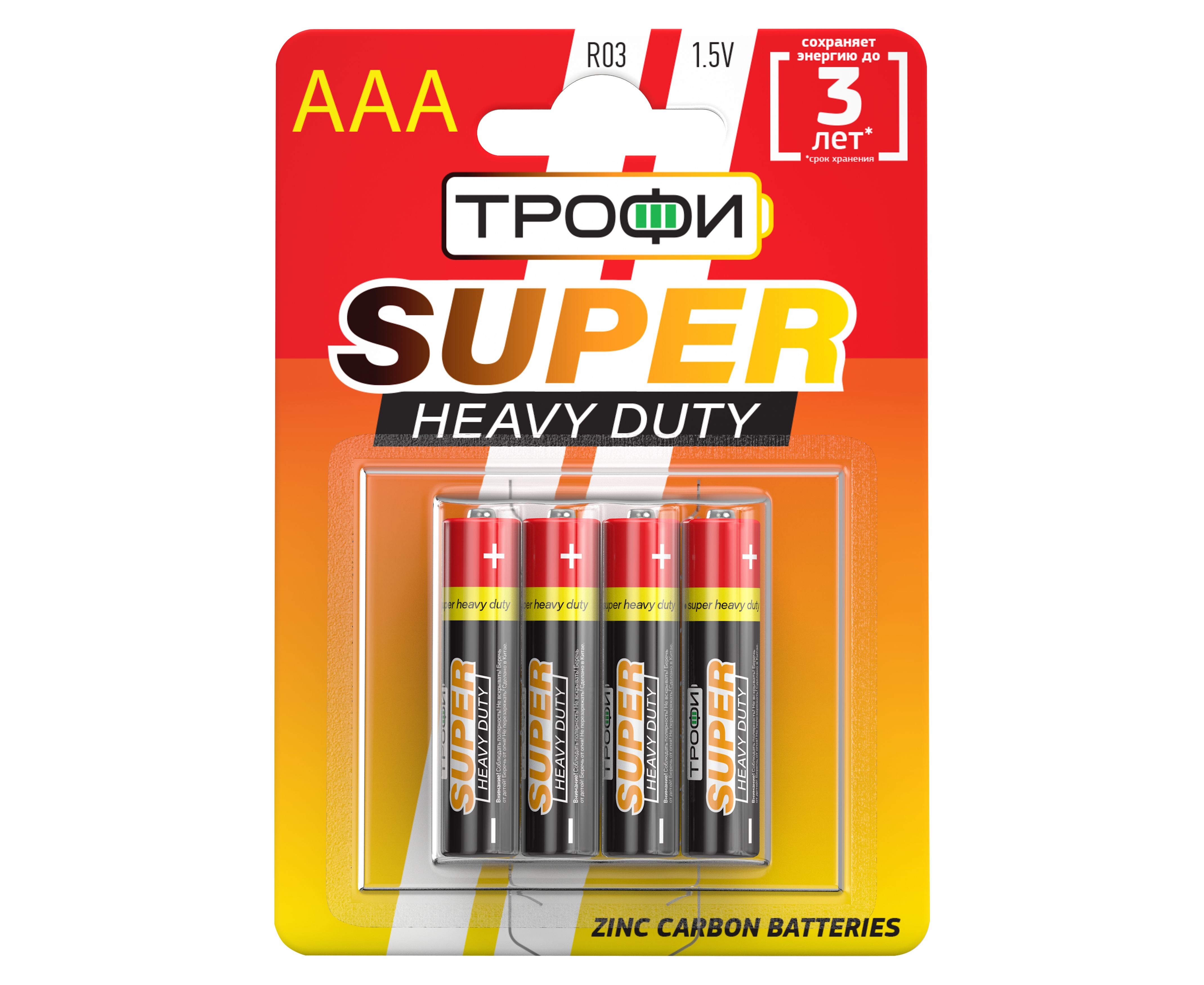 Элемент питания Трофи R03-4BL SUPER HEAVY DUTY Zinc (40/960/46080)