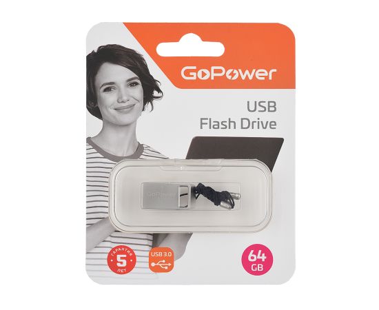 Флеш-накопитель GoPower MINI 64GB USB3.0 металл серебряный (1/50/1000)