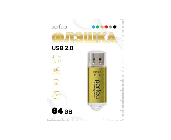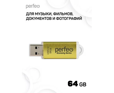 Флешка Perfeo 64GB E03 Золотая economy series