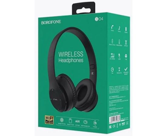 Bluetooth-наушники полноразмерные Borofone BO4 Charming rhyme (black) 1. Динамик: диаметр 40 мм 2. Спецификация Bluetooth: Bluetooth V5.0 JL 3. Поддержка протоколов: A2DP, AVRCP, HSP, HFP 4. Зарядное напряжение: DC 5V Время зарядки: около 1,5 часов 5. Время звонка / музыки: около 5 часов