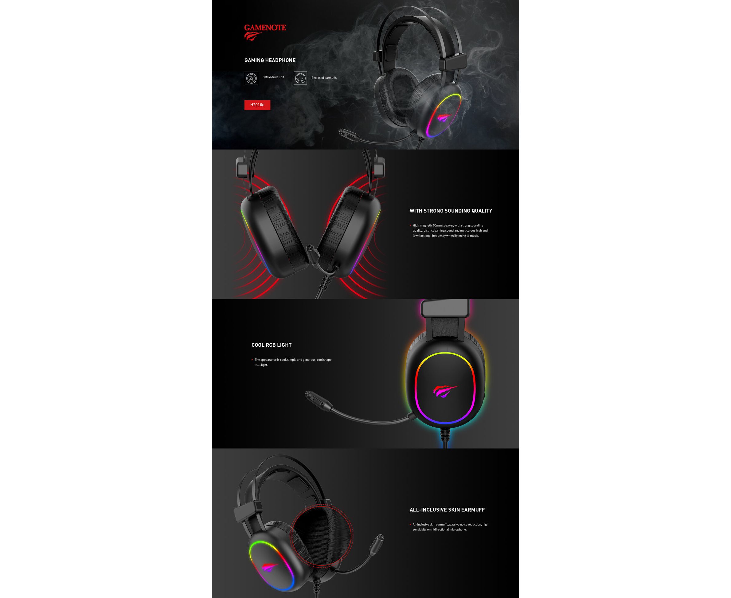 Гарнитура игровая с RGB подсветкой HAVIT GAMENOTE HV-H2016d Gaming Черная