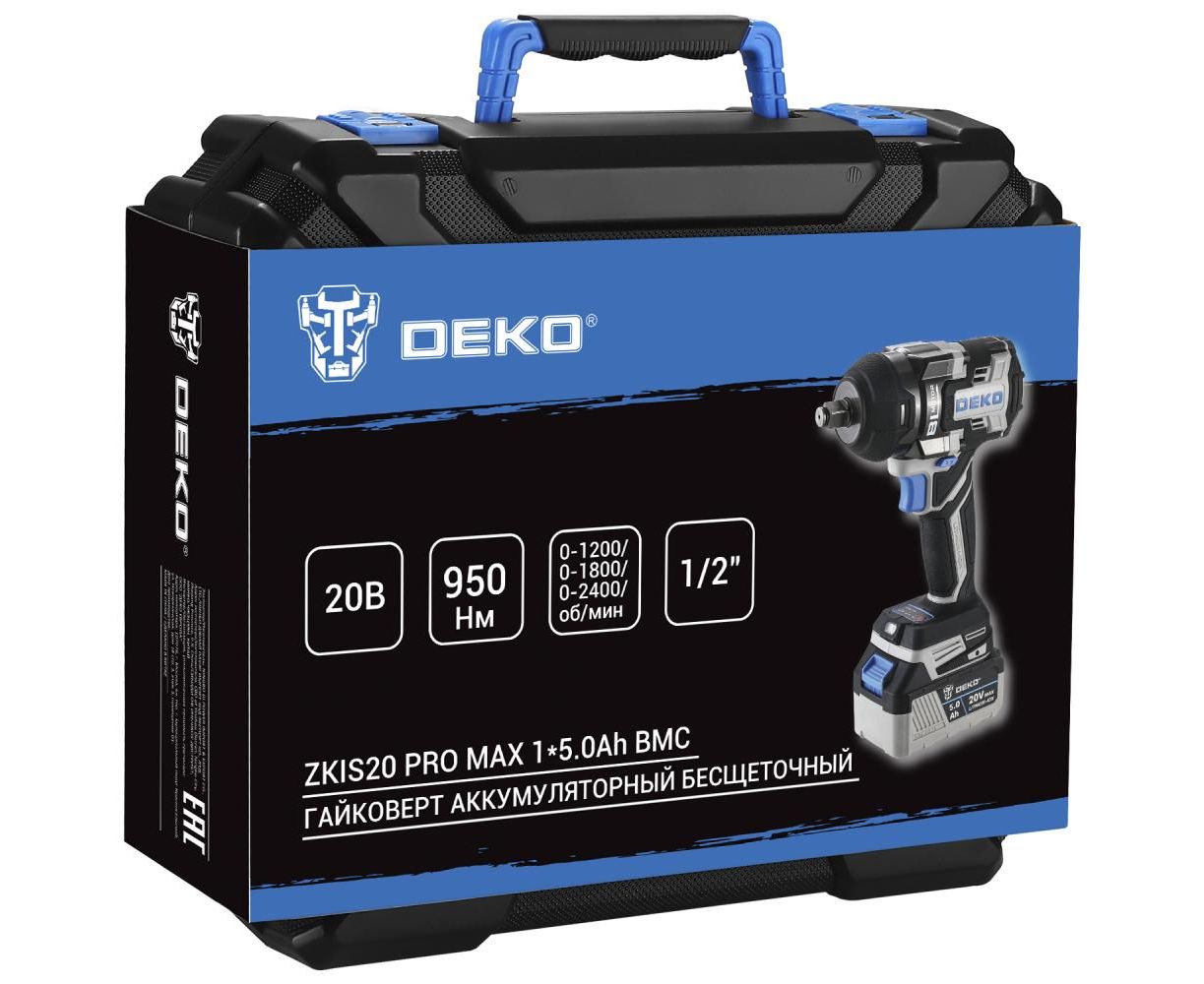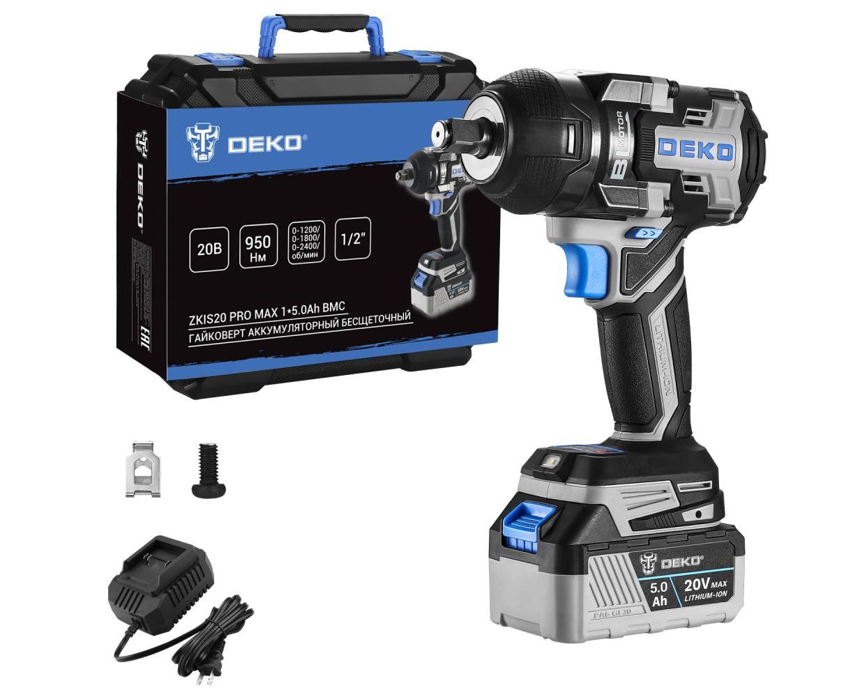 Гайковерт аккумуляторный бесщеточный DEKO ZKIS20 Pro Max 083-1089, 20В, 1*5.0Ач, 950Нм, в кейсе