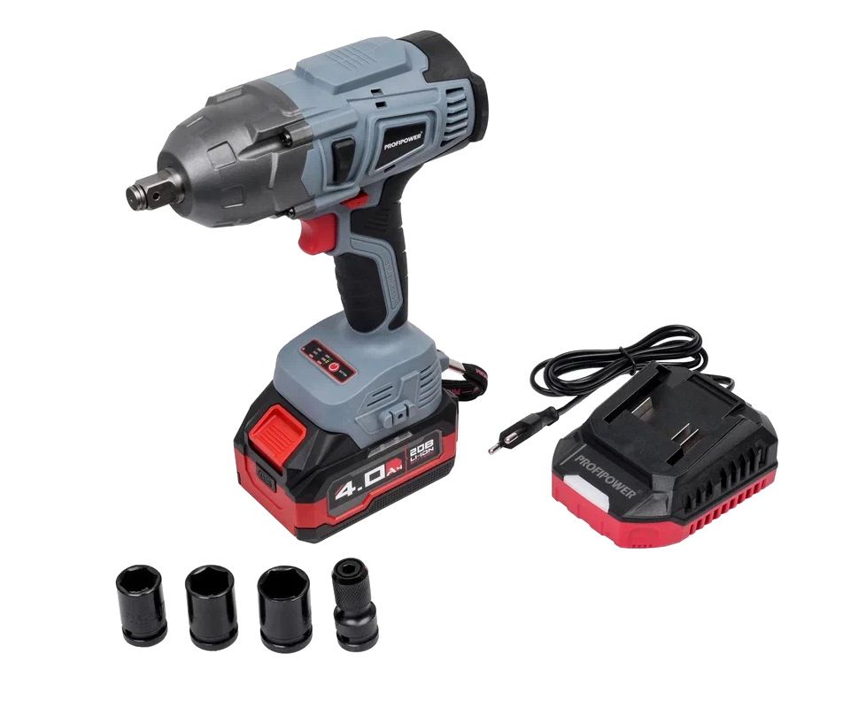 Гайковерт аккумуляторный PROFIPOWER DWDTW-20B (E0105M1) 20В, Li-ion-1шт, 4.0Ач, 600Нм, ударные головки,адаптер для бит, З/У, в кейсе