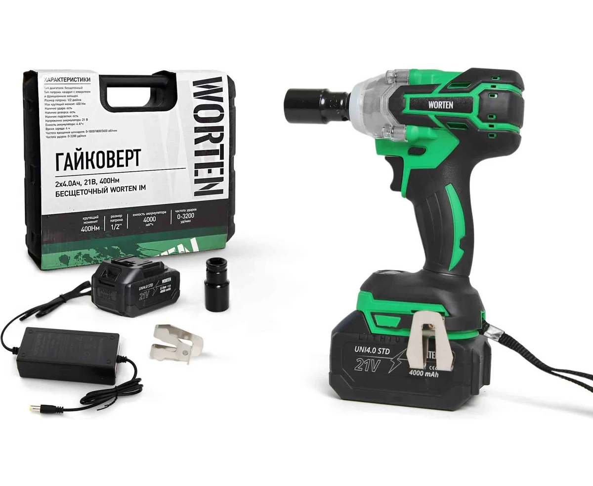 Гайковерт WORTEN IM КА-90000578 1х4.0Ач+ЗУ 21В 400Нм бесщеточный