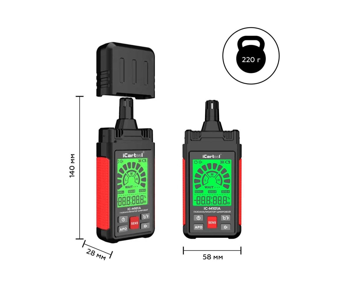 Цифровой газоанализатор IC-M101A предназначен для измерения объемной доли горючих газов, воспламеняющихся веществ и вредных паров. Контролирует превышение допустимой концентрации вредных паров в помещениях бытового и производственного назначения, а также используется для измерения температуры и относительной влажности окружающей среды.