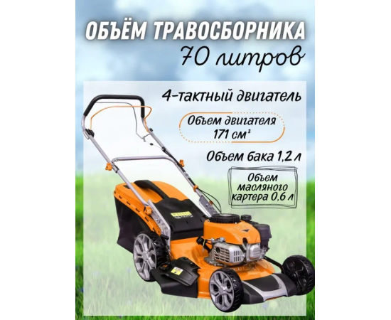 Общие характеристики Тип газонокосили самоходная Ширина скашивания 51 см Рекомендуемая площадь скашивания 1000 кв.м Скорость вращения ножа до 6500 об./мин Травосборник мягкий с жестким верхом Функциональность Дополнительные функции антивибрационная система, плавная регулировка скорости движения, регулировка высоты скашивания Конструктивные особенности регулировка ручки по высоте, складная ручка Минимальная высота скашивания 30 мм Максимальная высота скашивания 80 мм Травосборник мягкий с жестким верхом Система выброса комбинированный Двигатель Двигатель бензиновый Количество тактов двигателя 4х тактный Мощность ДВС 5.5 л.с. Рабочий объем 171 куб.см Обороты двигателя 6500 Топливный бак на 1.2 л Объем масла 0.6 л Конструкция Материал деки пластик Материал корпуса сталь Количество колес четырехколесная