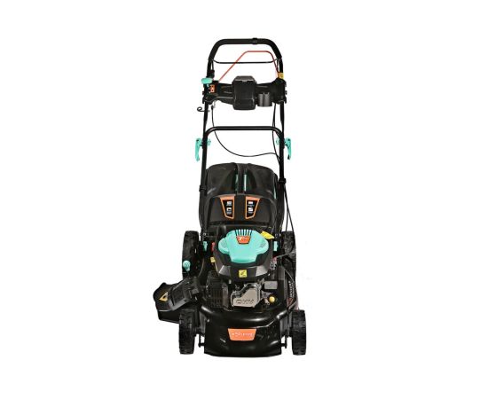 Газонокосилка работает в четырех режимах: боковой выброс травы, задний выброс травы, режим мульчирования и сбор травы с травосборник
