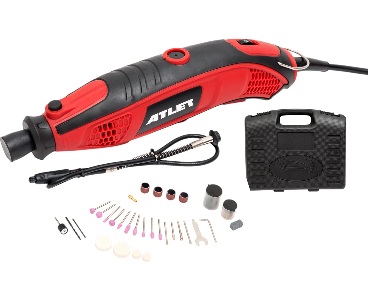 Гравер ATLET мощностью PDM170N 170 Вт с регулируемой скоростью от 10,000 до 35,000 об/мин — это удобный бытовой инструмент, используемый в различных задачах и комплектацией из 86 аксессуаров.