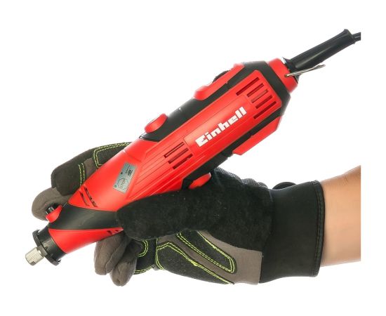Гравер Einhell TH(TC)-MG 135 E 4419169 используется для сверления, резания, шлифования, зачистки, нанесения надписей. В комплект поставки входят гибкий вал и большой набор насадок в отдельном кейсе, которые позволяют приступать к работе без потери времени и дополнительных трат. На хвостовой части корпуса есть скоба для хранения модели в подвешенном состоянии (стойка со струбциной для фиксации на рабочем столе прилагается).