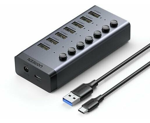 Хаб UGREEN CM481 (90307) USB-C to 7-Port USB-A 3.0 Hub DC 12V EU черный