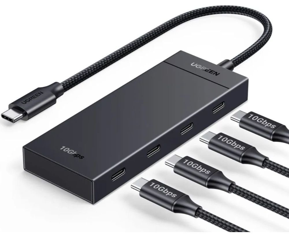Этот компактный и удобный USB-хаб расширяет возможности подключения через USB-C. Он превращает один порт USB-C на устройстве в четыре, обеспечивая быструю передачу данных со скоростью до 10 Гбит/с. Например, файл объемом 20 ГБ можно передать всего за 16,4 секунды. Обратите внимание, что порты предназначены только для передачи данных и не поддерживают зарядку и вывод видео.