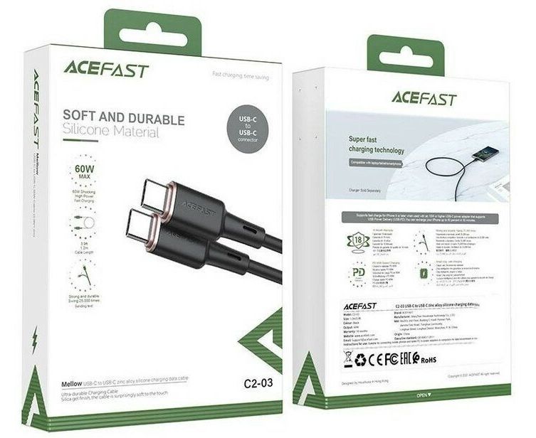 Выбирая кабель ACEFAST C2-03 USB-C/USB-C 1,2m Black (AF-C2-03-BK), вы получаете надежный и функциональный аксессуар, который станет незаменимым помощником в повседневной жизни.