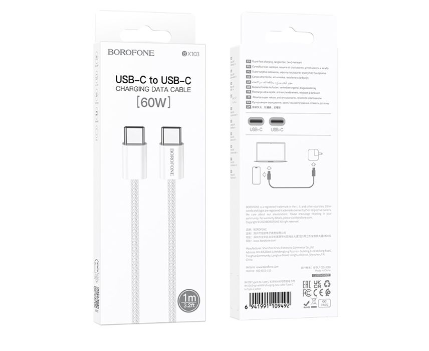 Кабель Borofone BX103 Type-C/Type-C White