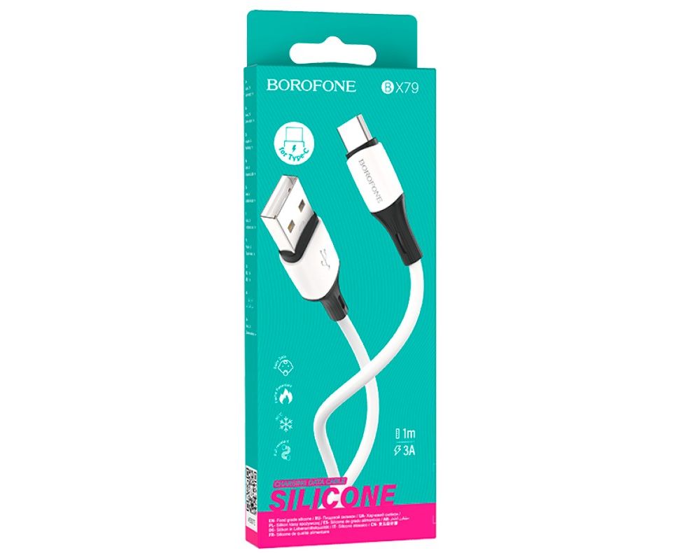 Кабель BOROFONE BX79/ USB Type-C/ 1m/ 3A/ Силикон/ Белый