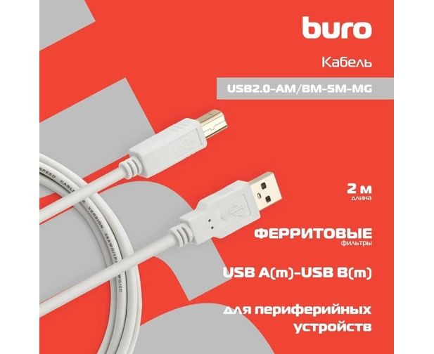 Кабель Buro (USB2.0-AM/BM-5M-MG) USB2.0 USB A (m)/USB B (m) 5м феррит.кольца