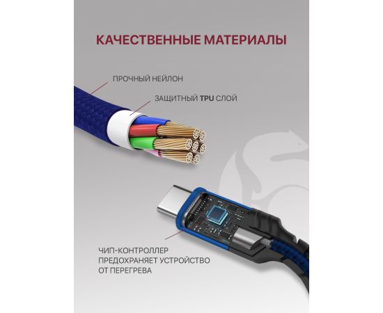 Нейлоновый кабель для зарядки USB Type-C. Максимальный ток 2.1 Ампер. Зарядный провод для USB Type-C подходит для любого устройства Android c разъемом USB Type-C. Кабель для Android прошёл тестирование на прочность и работоспособность, имеет защиту от скачков напряжения, от перегрева и короткого замыкания. Нейлоновая оплетка придает кабелю дополнительную жесткость и защищает от возникновения заломов и механических повреждений, усиленная защита коннекторов значительно продлевает срок службы кабеля. Провод для смартфонов Android может передавать данные на ПК при подключении через USB. Длина кабеля составляет 1м.