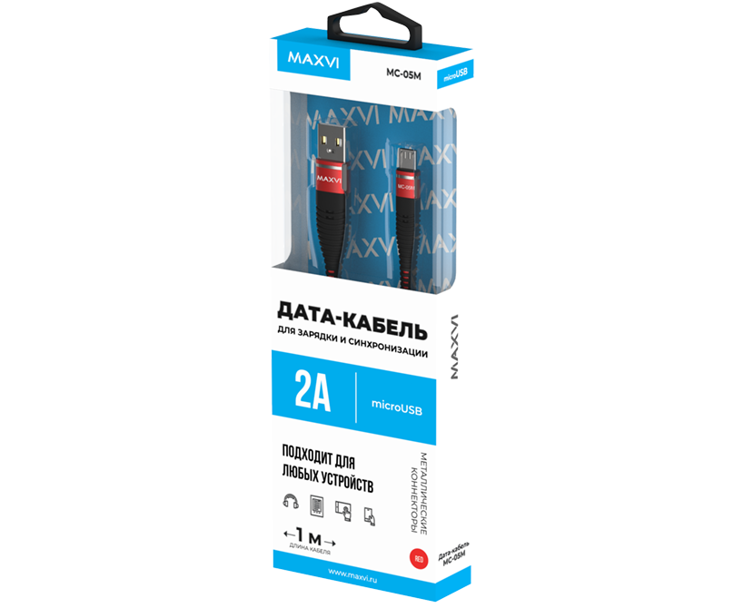 Кабель Maxvi MC-05M red USB-A-microUSB, 2A